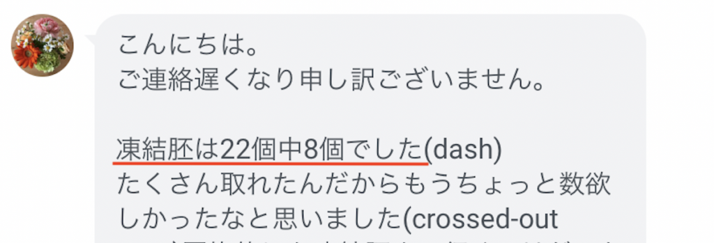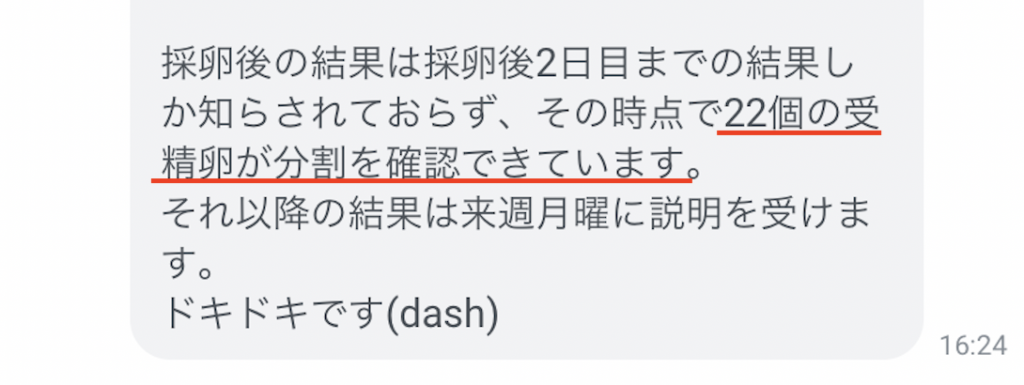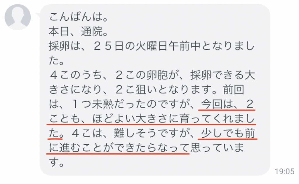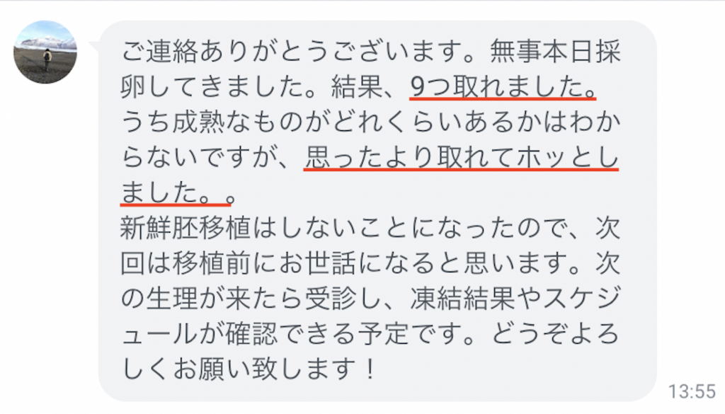 採卵結果のLINEを頂きました!